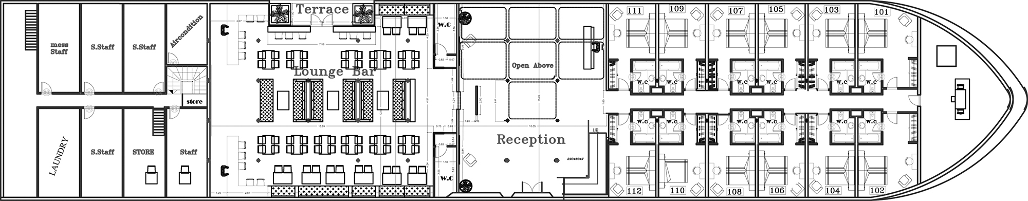 There is a large sun deck with sun beds and stylish furniture. It provides a relaxing place to sit and enjoy the spectacular views of the Nile and the swimming pool is ideal for a refreshing dip during the day. The Deck bar offers cool daytime refreshments and the lounge bar offers drinks and entertainment in the evening.