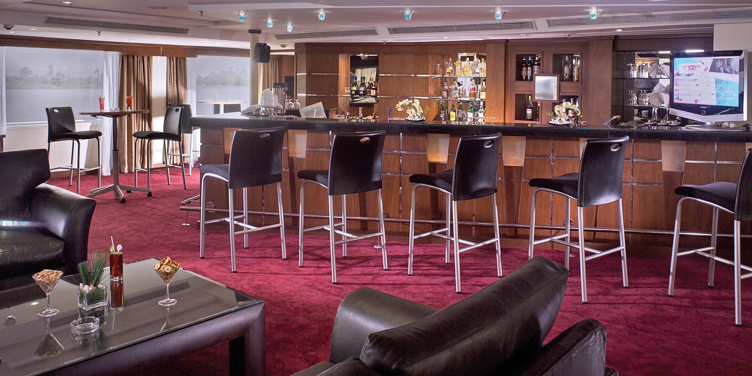 Overlooking a panoramic view of the Nile, the Sun Deck bar serves cocktails and beverages throughout the afternoon and evening.
