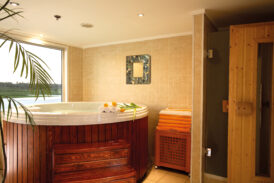 There is a small spa and fitness centre, Jacuzzi and sauna.