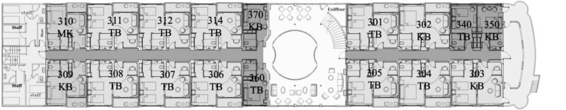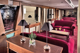The ship is comprised of 27 deluxe Beethoven Suites, 2 Mozart Suites and 2 superior Chopin Suites. The Beethoven Suites all measure 40m2, each with a private balcony. Each suite has a comfortable sitting area offering maximum comfort and space. All suites offer air- conditioning, satellite TV, mini bar and a safe.