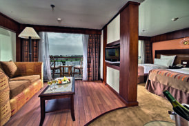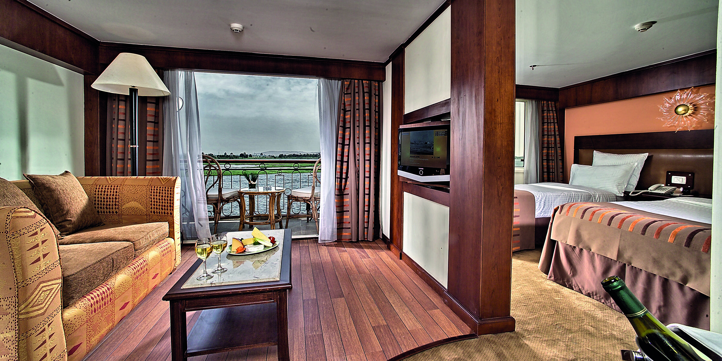 This cruise boat is one of the finest on the Nile. Its large suites have private balconies that provide an intimate environment for your cruise down the Nile.